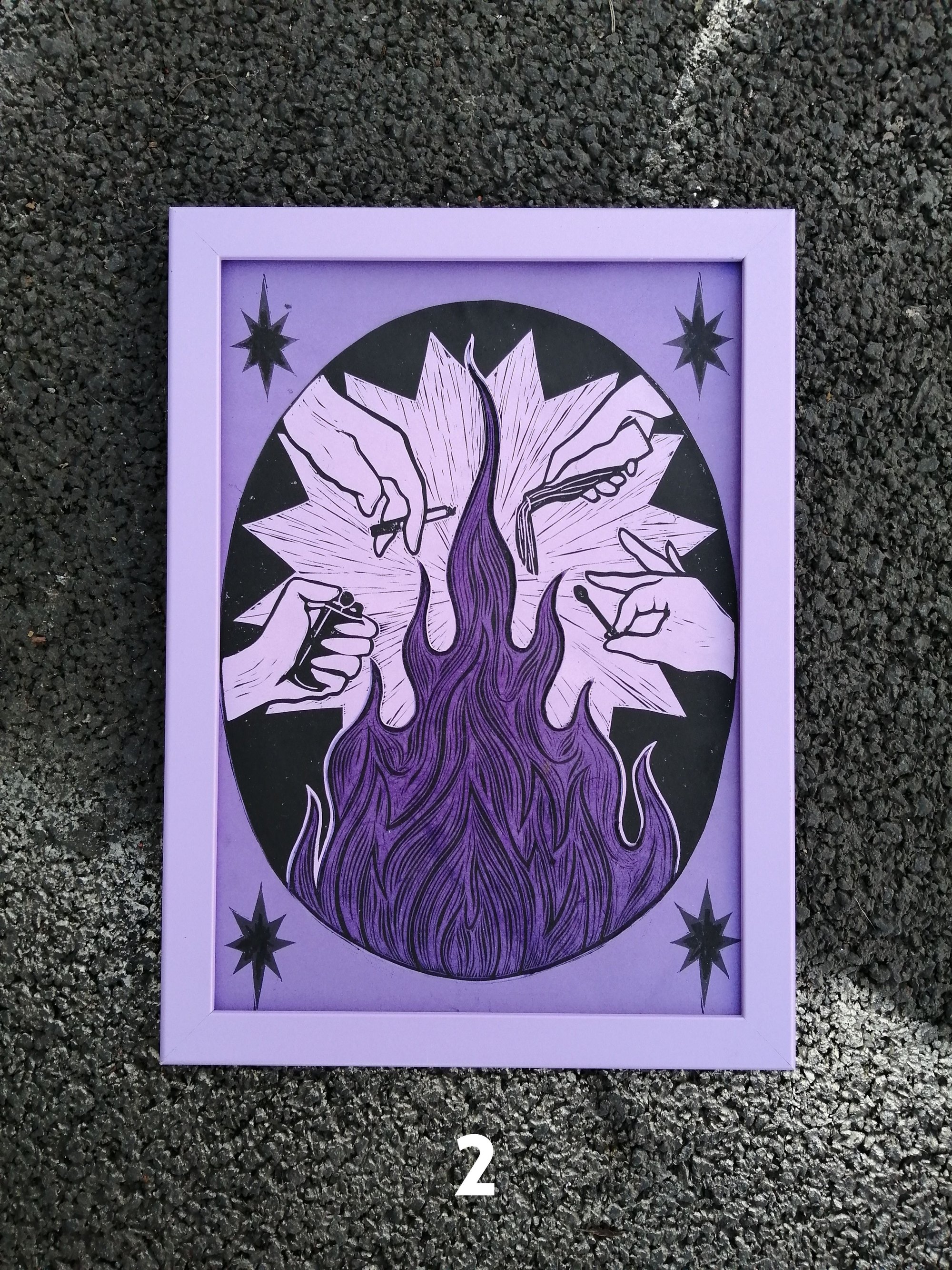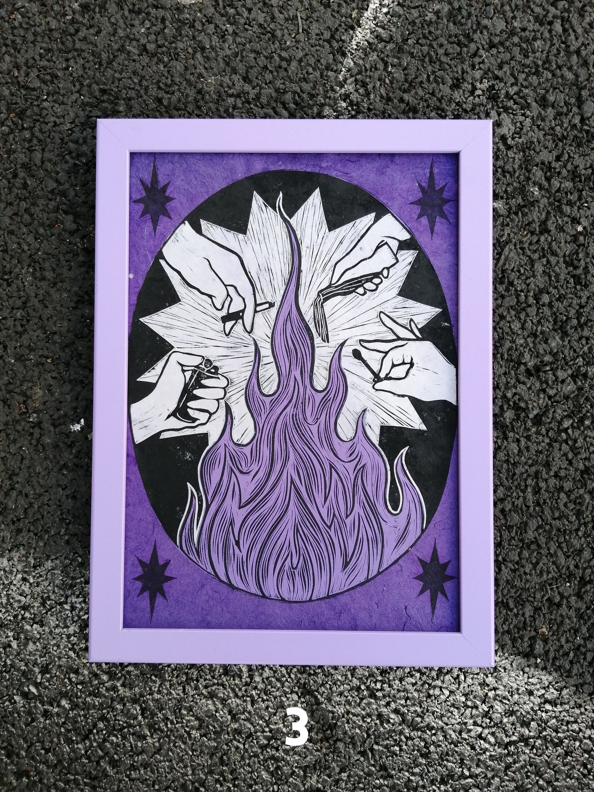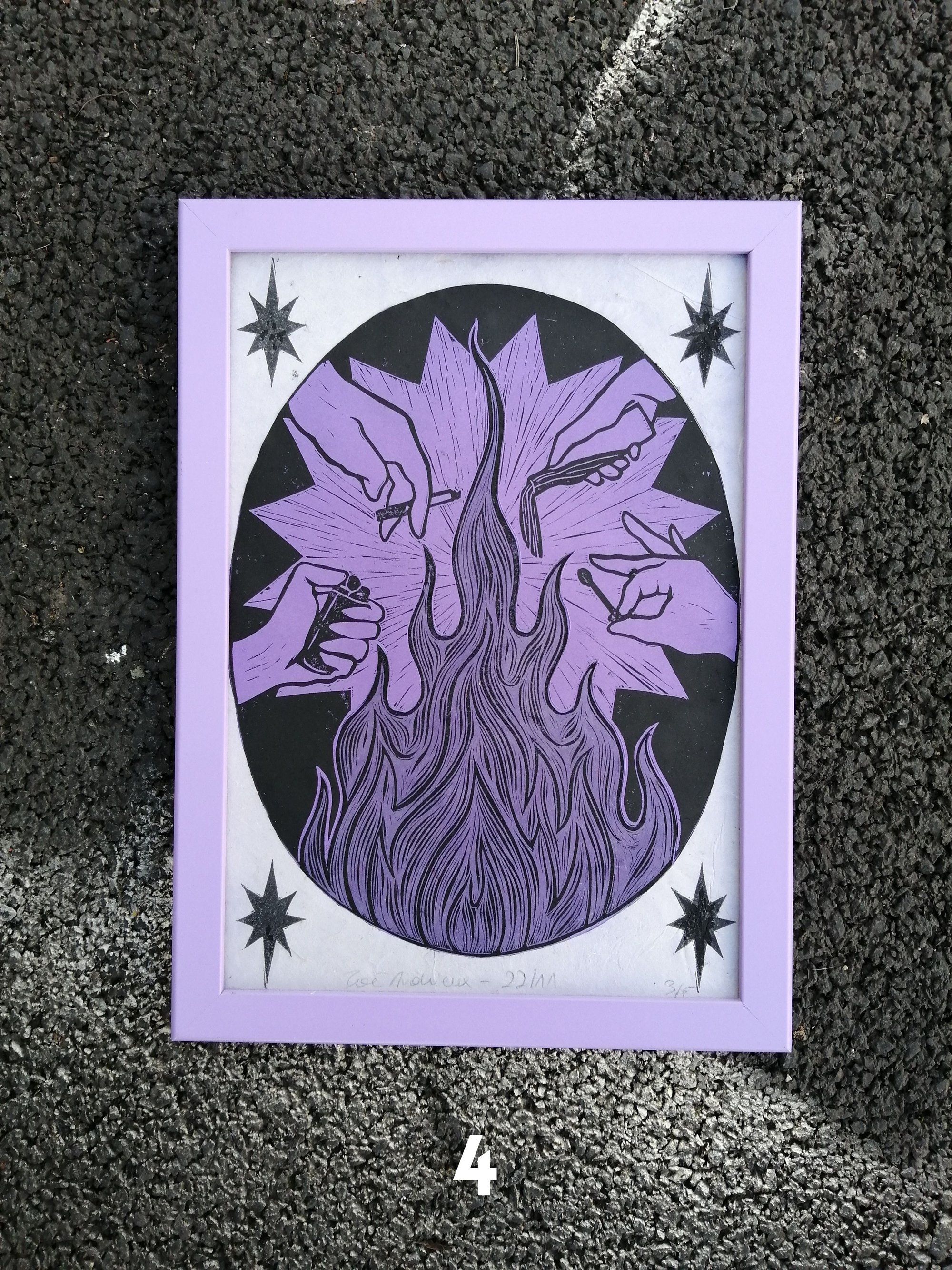 Chaque partie colorée est une linogravure imprimée, découpée à la main, puis assemblée pour former l'œuvre finale. Les tirages sont donc uniques et sont limités à 5 au total.