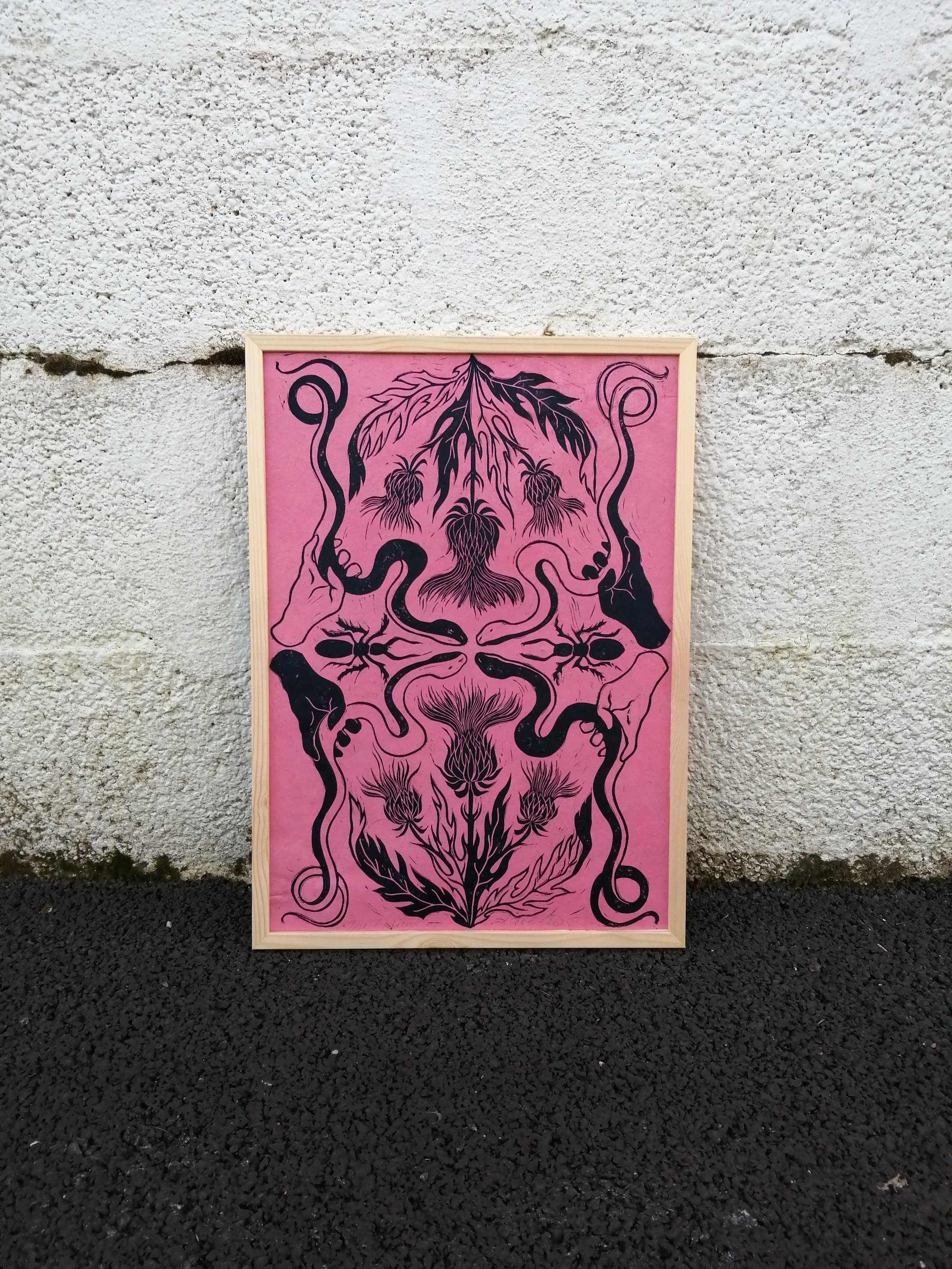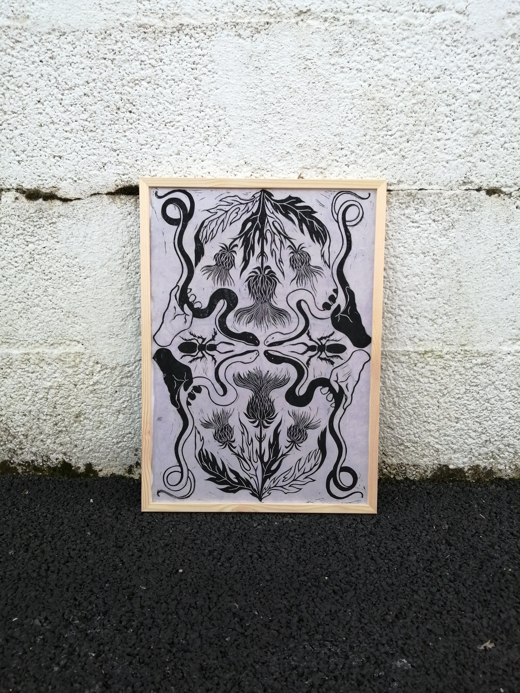 Linogravure format A3 imprimée sur du papier artisanal (Lokta ou Mûrier).